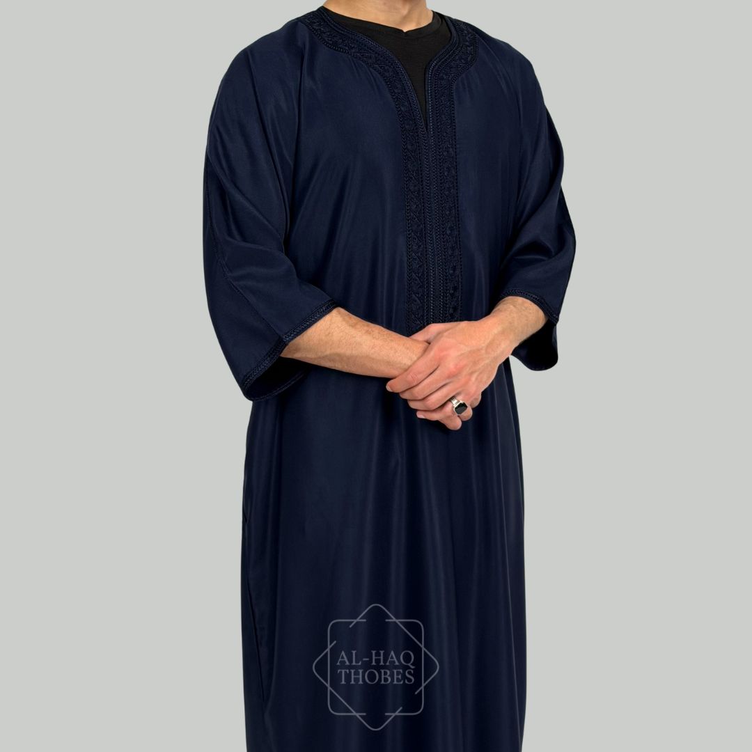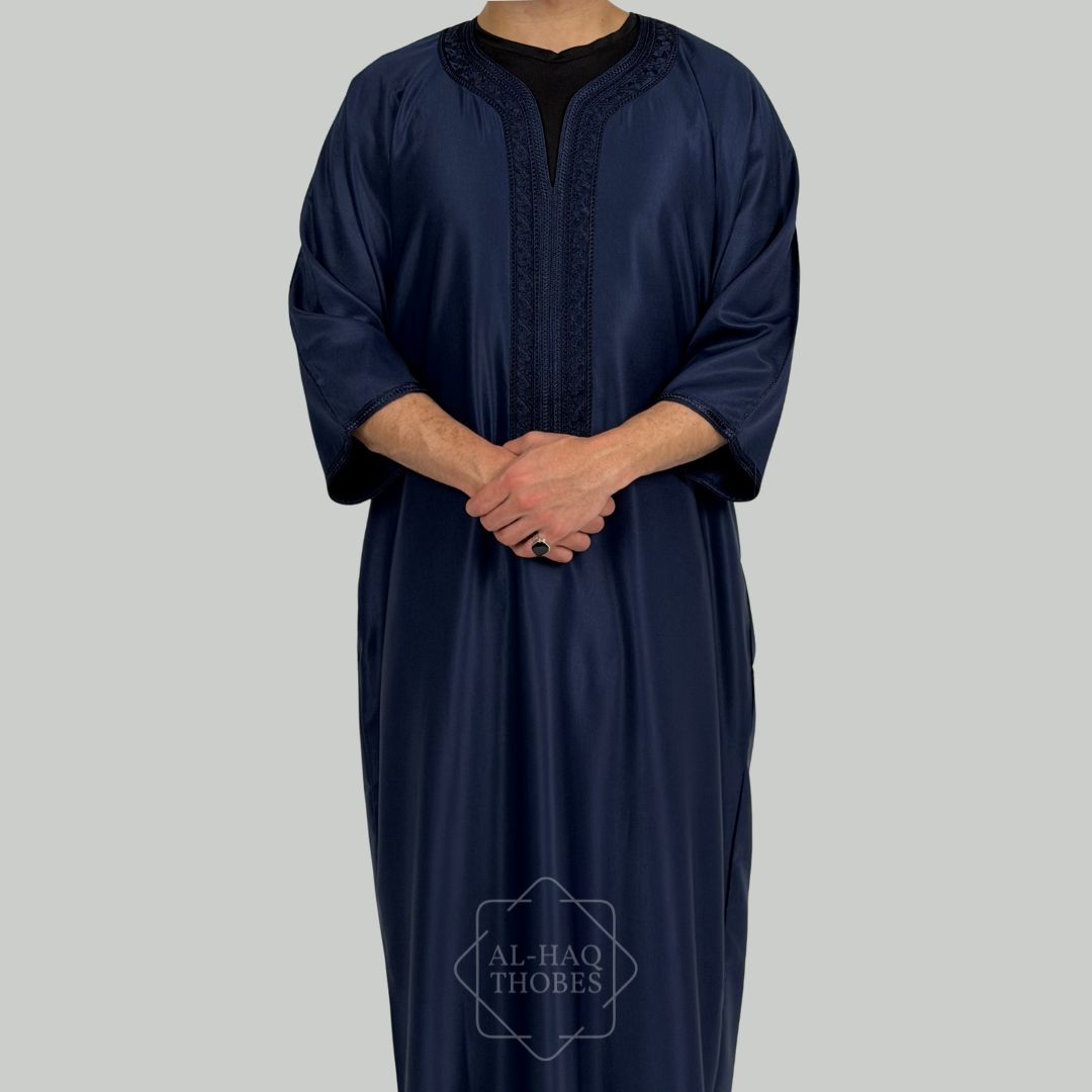 Luxury Navy Blue Moroccan Gandoura Thobe