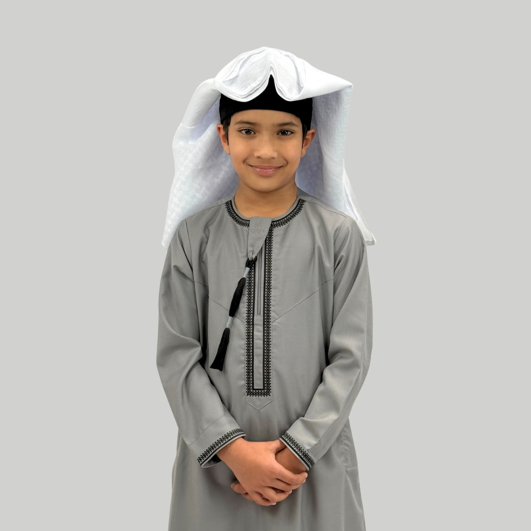 Boy's Luxury Grey & Black Omani Thobe
