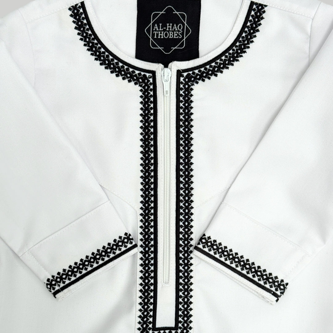 Toddler Luxury White & Black Embroidered Omani Thobe