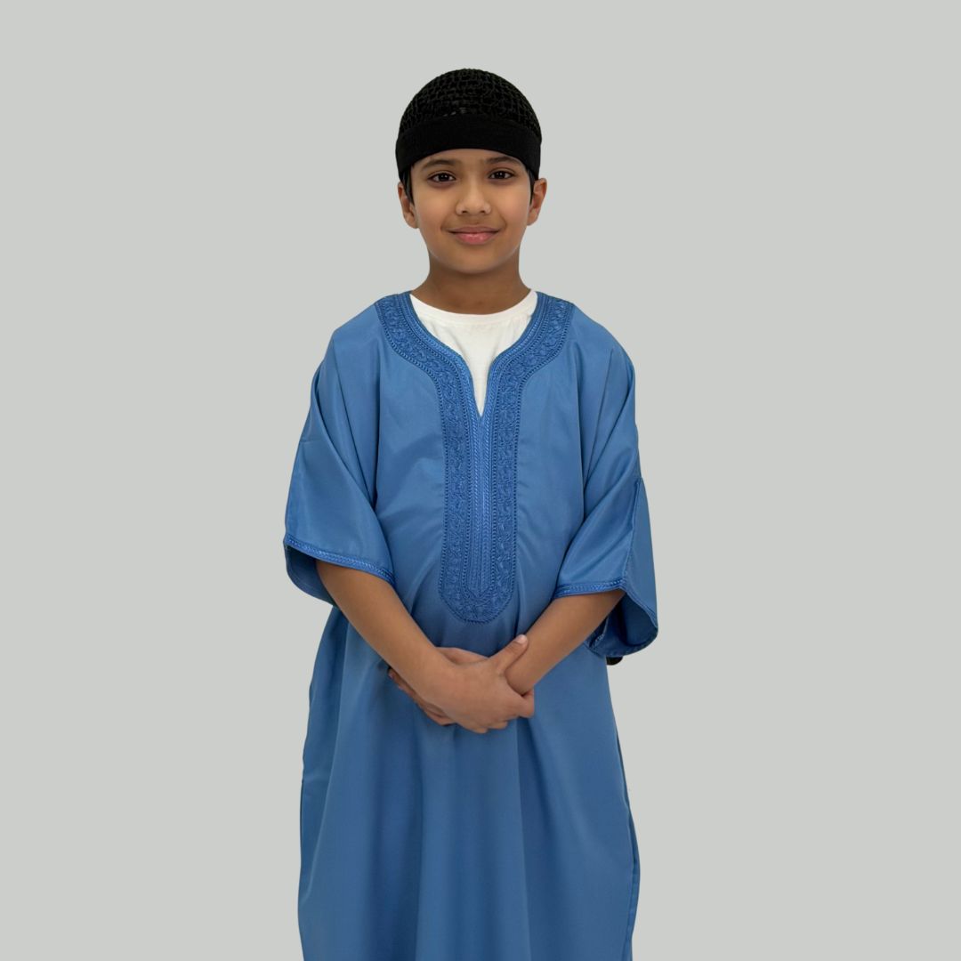 Boy's Luxury Azure Blue Moroccan Gandoura