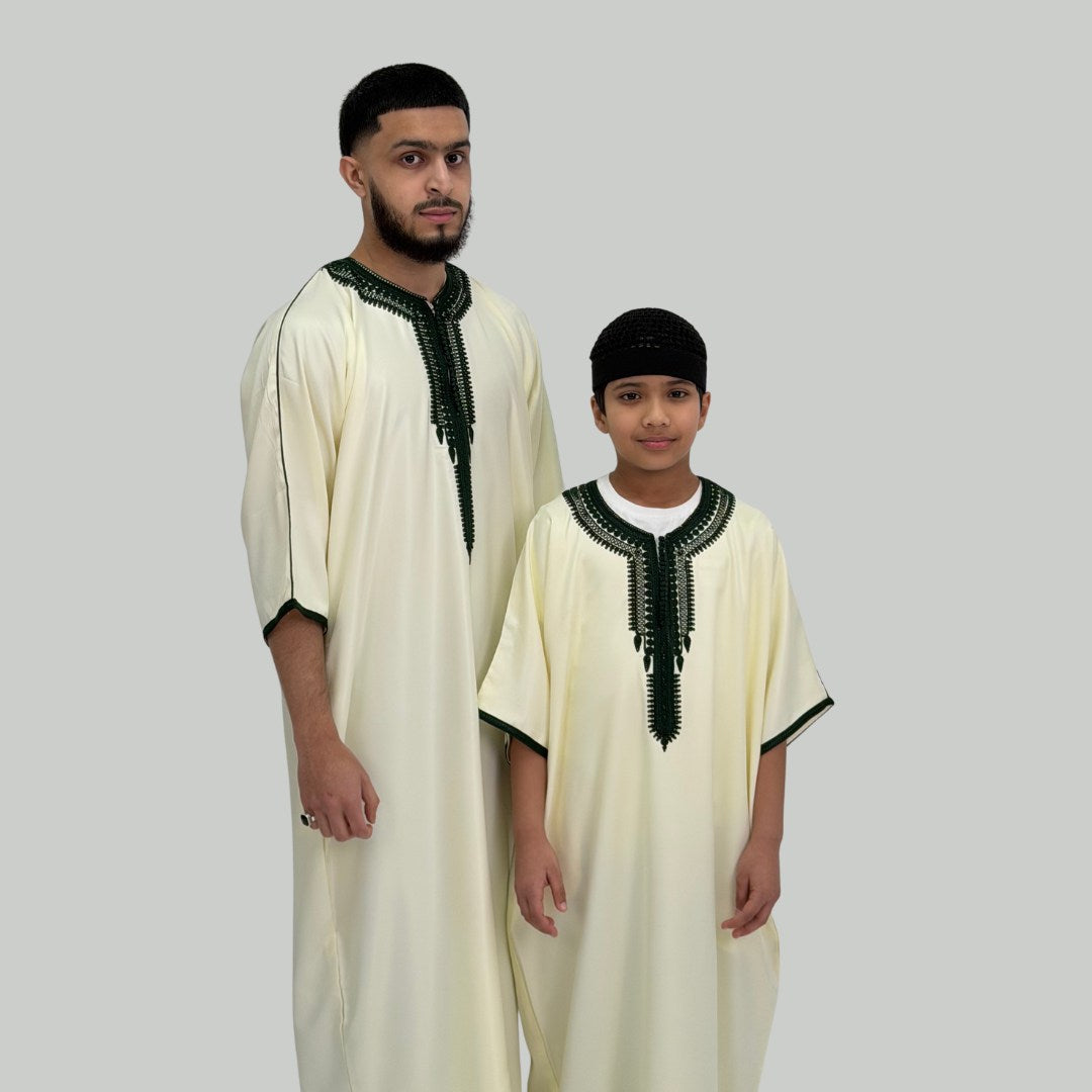 Boy's Luxury Cream & Green Zipped Moroccan Gandoura
