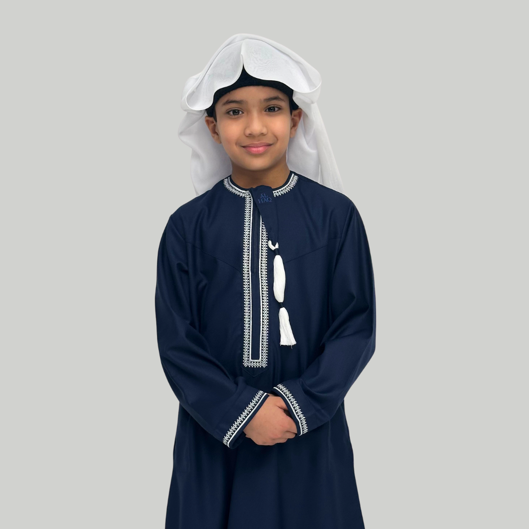 Boy's Luxury Navy & White Omani Thobe