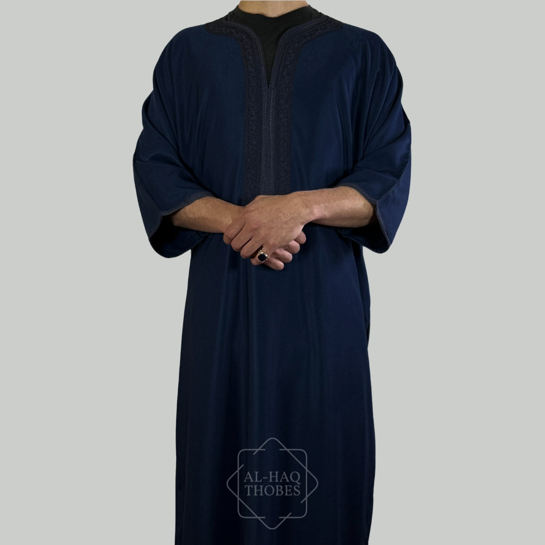Luxury Navy Blue Moroccan Gandoura Thobe