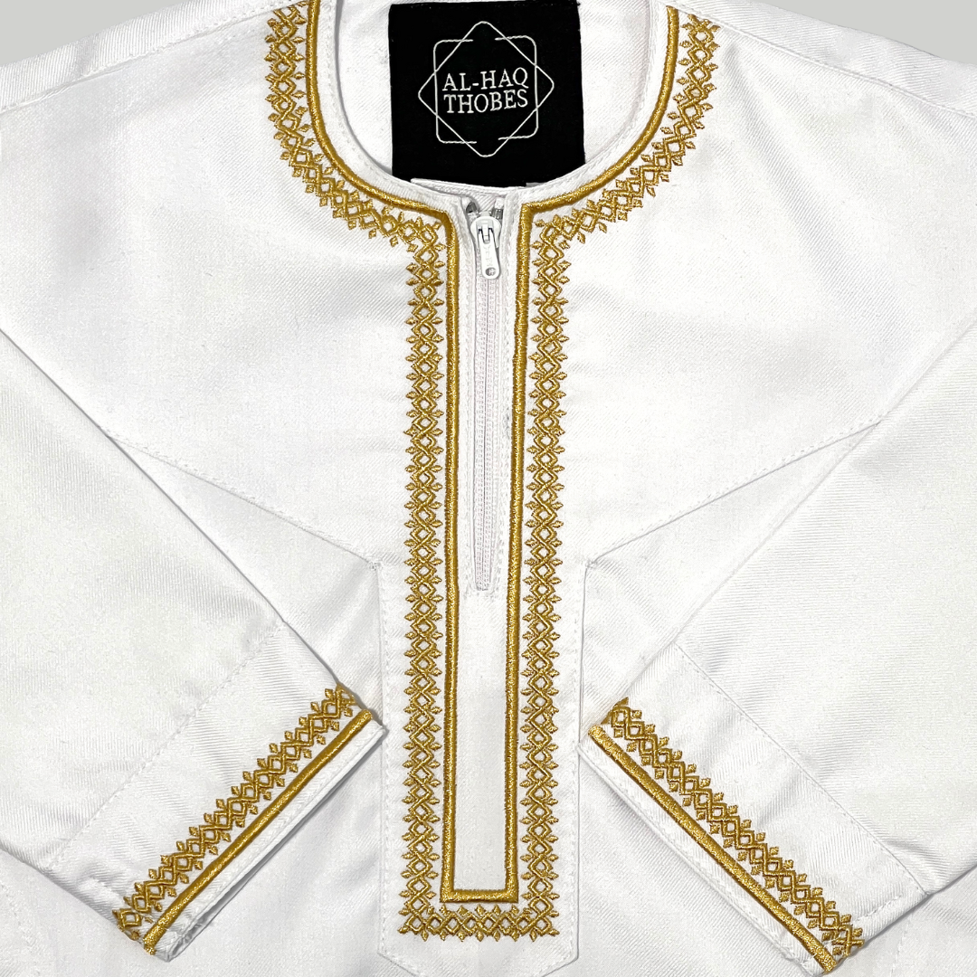 Toddler Luxury White & Gold Embroidered Omani Thobe