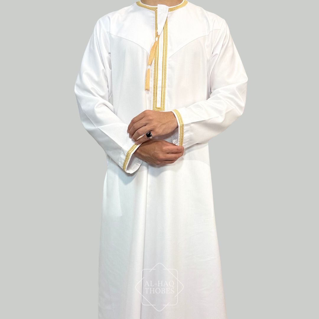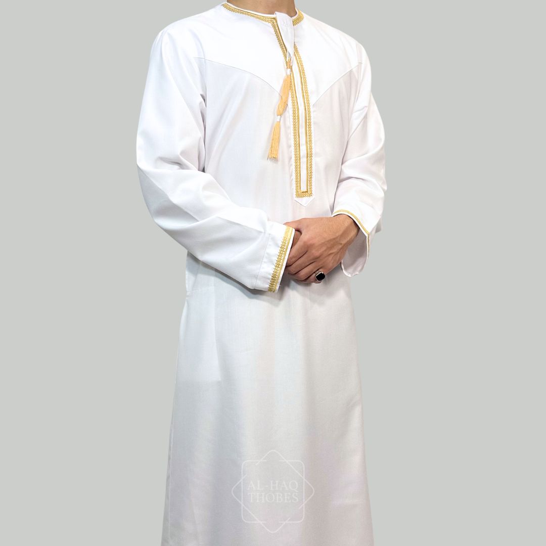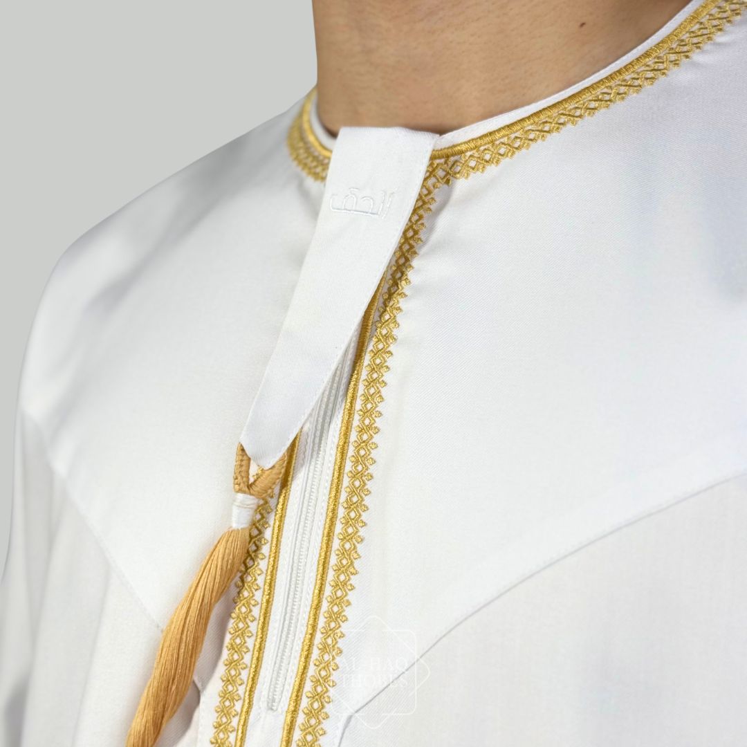 Luxury White & Gold Omani Thobe