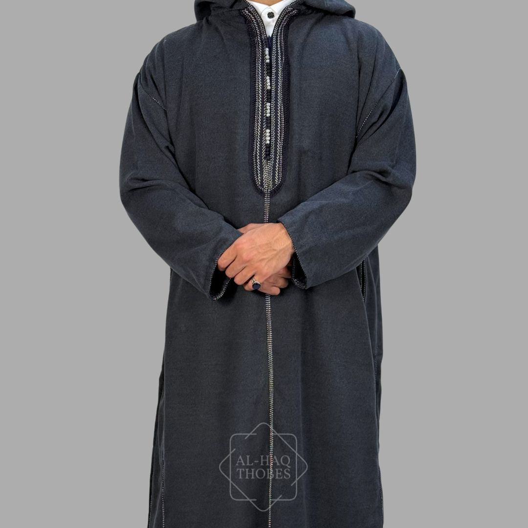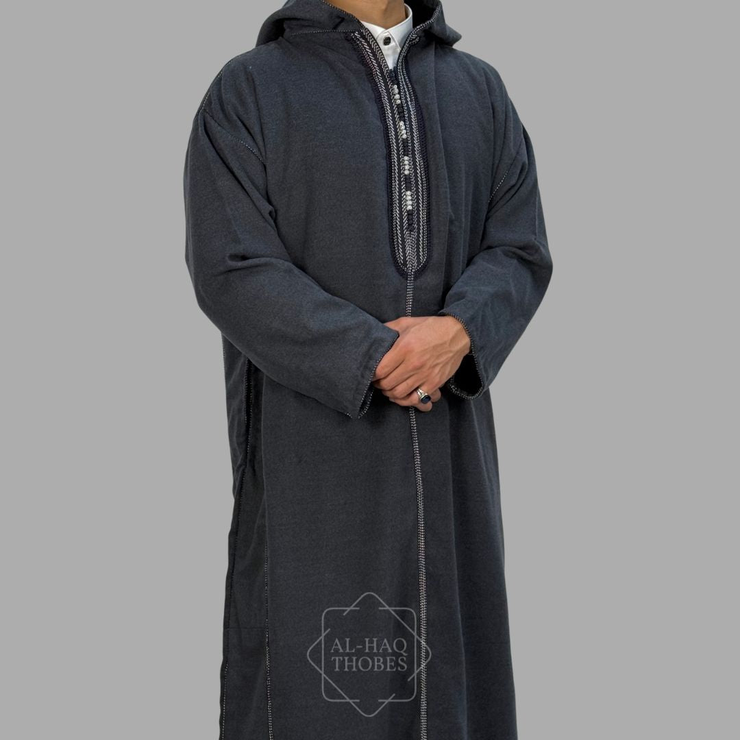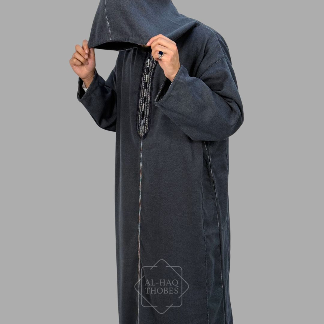 Premium Charcoal Navy Hooded Moroccan Thobe