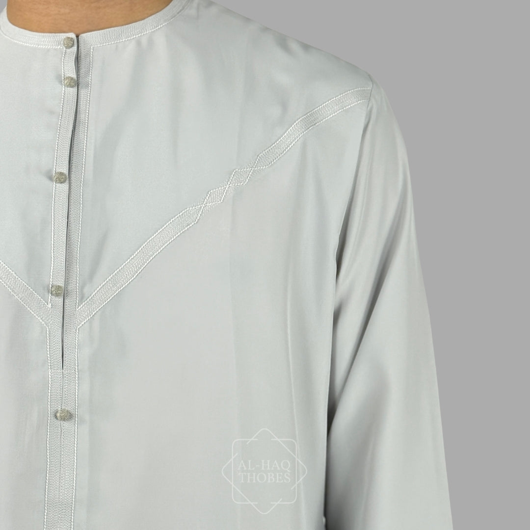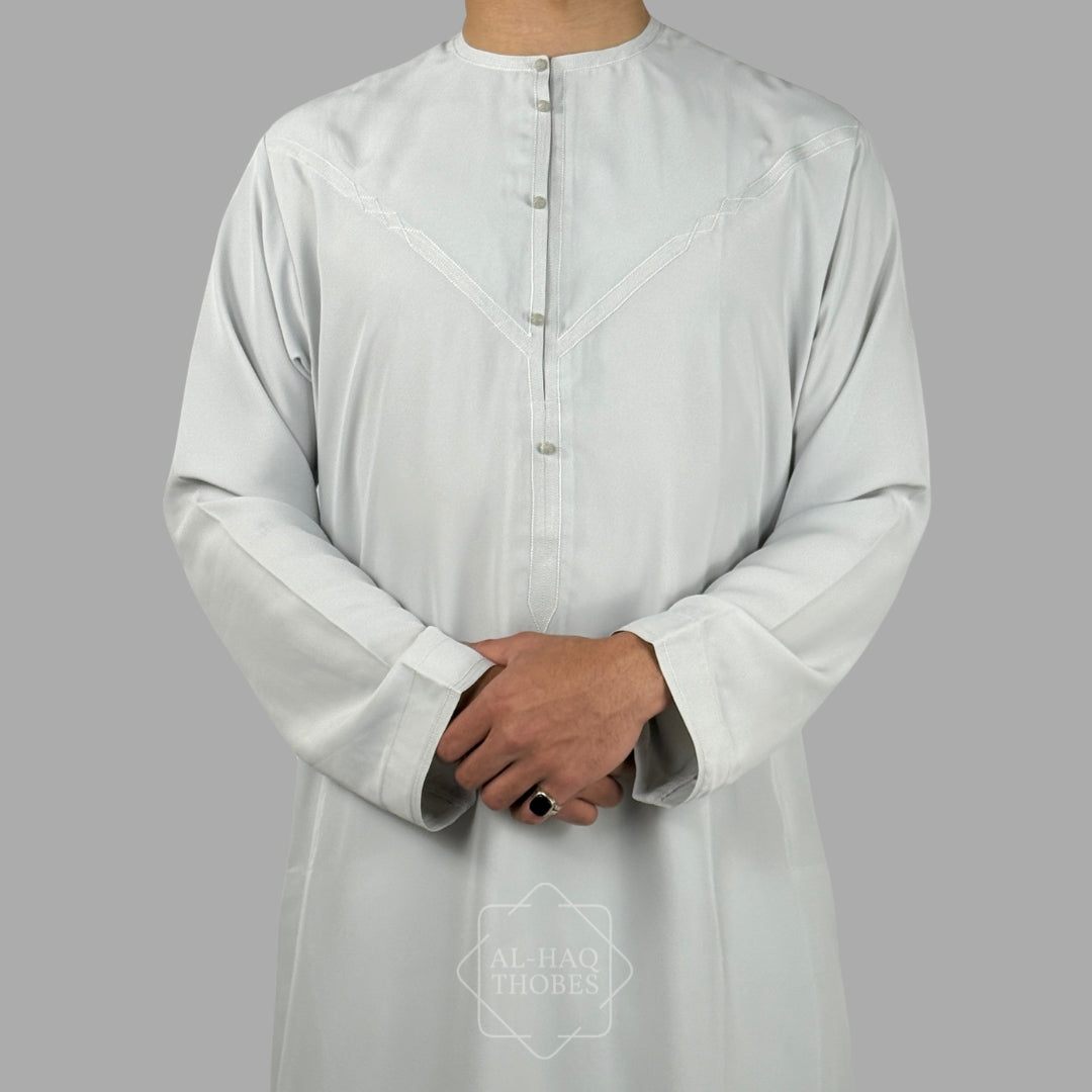 Luxury Pearl Grey Lightweight Zibda Emirati Thobe (Buttons)