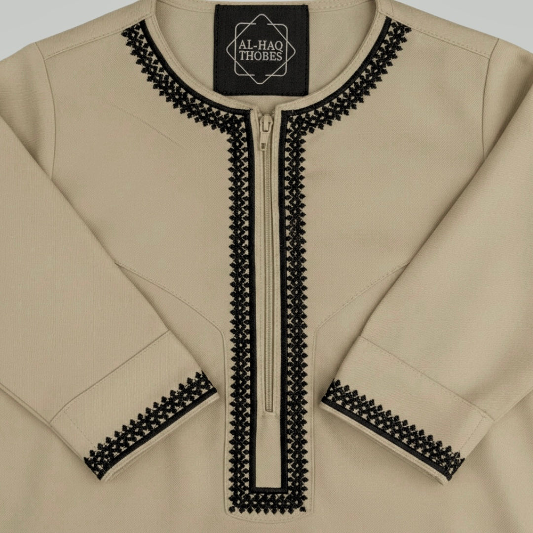 Toddler Luxury Stone Beige Embroidered Omani Thobe